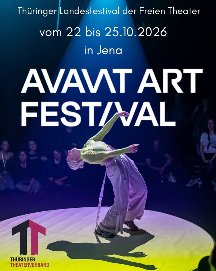 Dieses Jahr veranstaltet der Thüringer Theaterverband. e.V. wieder das Landesfestival der Freien Theater AVANT ART. Künstler*innengruppen aus Thüringen oder mit einem Bezug zu Thüringen sind herzlich eingeladen sich zu bewerben.